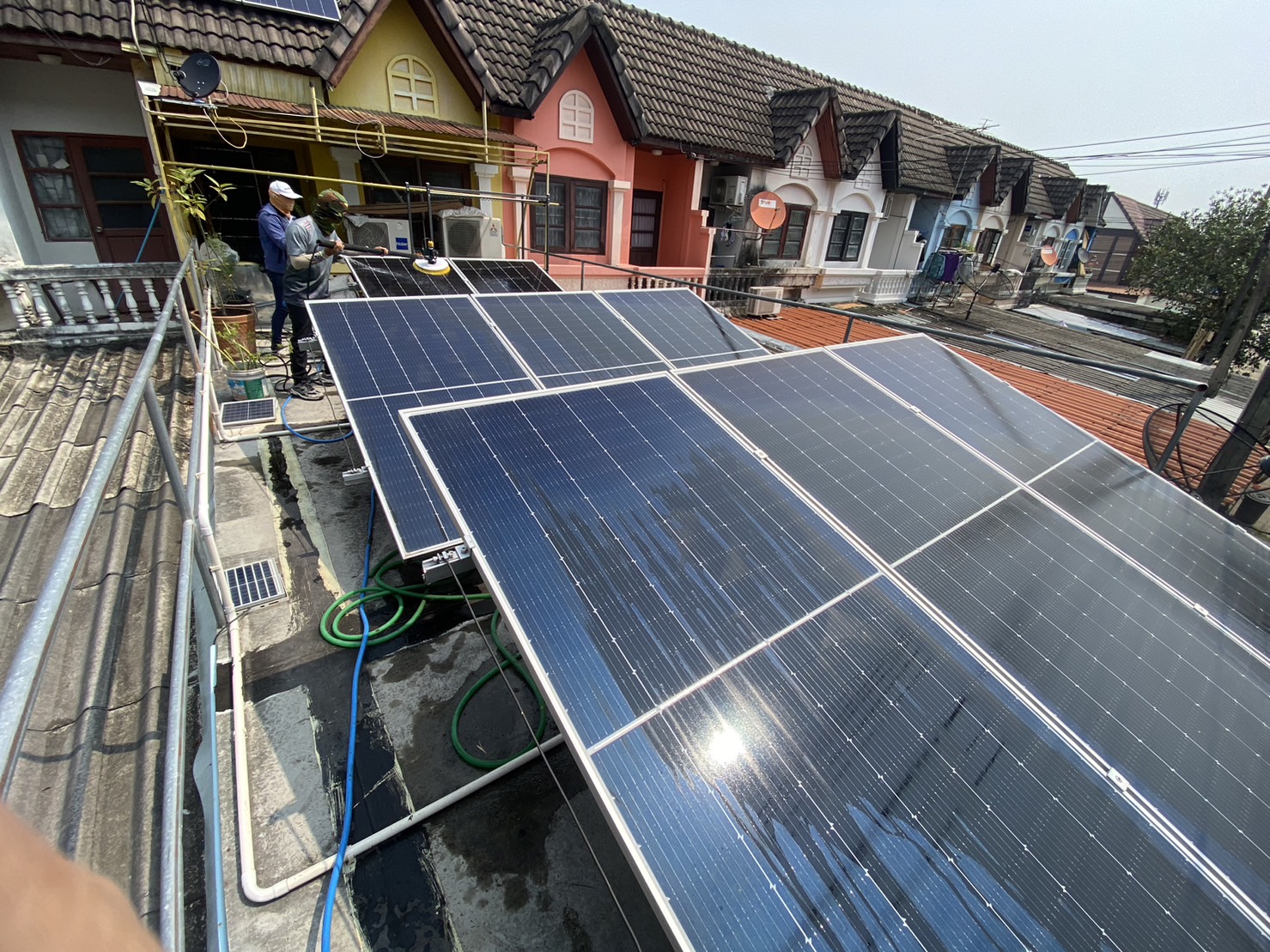 การล้างและทำความสะอาดแผงโซล่าเซลล์ตามบ้านของลูกค้าที่ติดตั้งกับ Impactโดยอยู่ในระยะรับประกันหลังจากการติดตั้ง